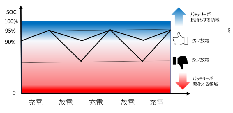 放電が深ければ深いほど、バッテリーの劣化が著しく進みます。